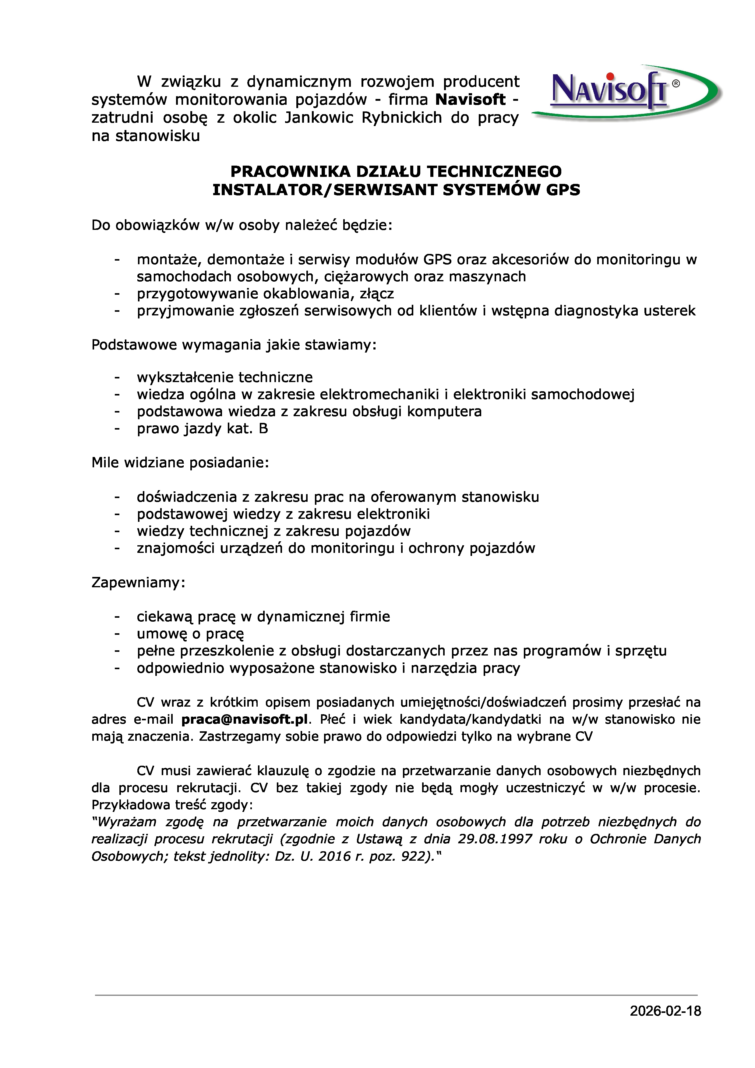 << O nasO nasAktualnościCertyfikaty i dokumentyOpinie i referencjePraca - współpracaPracownik działu technicznegoPracownik wsparcia technicznegoPolityka CookiesProduktyMonitorowanie pojazdów GPSElektronikaZapytaniaBaza wiedzyKontakt